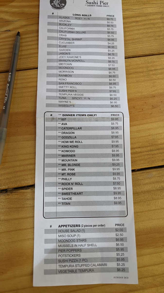 Sushi Pier (Reno) Menu
